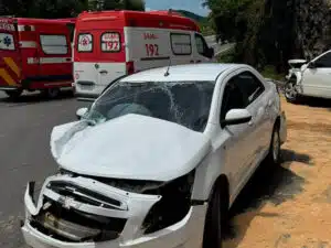 Batida de carros na BR 262 fere três em Domingos Martins