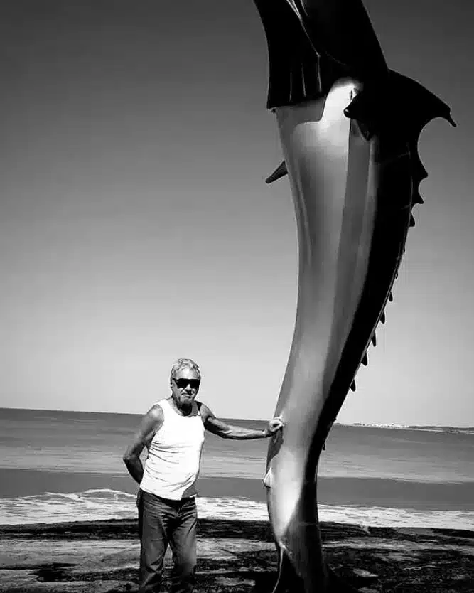 Entre suas criações mais marcantes estão o Marlim da Praia do Morro, o São Pedro da Prainha e os imponentes Guarás, que homenageiam a fauna e a cultura local.