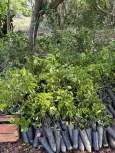 Ainda segundo a Prefeitura, até o momento, já foram plantadas aproximadamente 5 mil mudas de espécies nativas, sendo muitas com valor medicinal, alimentício e ecológico, como aroeira, pitanga, amescla, biriba, ingá, caju, araçá, copaíba e guanandi. Além disso, mais de 230 kg de “muvuca de sementes”, uma mistura com diversas sementes nativas da restinga, foram lançadas ao solo. As sementes foram fornecidas pela rede indígena de coletores de sementes Tupyguá, formada por 54 coletores de nove aldeias, sendo 44 mulheres.