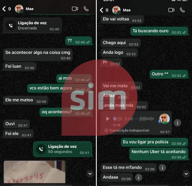 Imagens de conversas no celular da filha da vítima, Khauany Bittencourt, de 19 anos, mostram que Rayana pediu socorro pouco antes de ser morta. Em uma das mensagens, ela chega a escrever: “se alguma coisa acontecer comigo foi o Luan”.