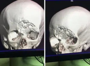 A jovem sofreu afundamento de crânio e precisou passar por diversas cirurgias, incluindo reconstrução facial com placas de titânio. Mesmo após mais de dois anos, Michaela ainda enfrenta graves sequelas e perdeu parte da visão afetada pelo trauma.