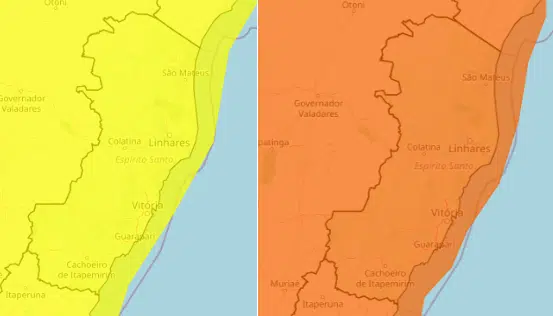 O Instituto Nacional de Meteorologia (Inmet) emitiu, nesta terça-feira (18), dois novos alertas de tempestade que abrangem todos os municípios do Espírito Santo. Os avisos, classificados nos níveis amarelo (perigo potencial) e laranja (perigo), permanecem válidos até a manhã desta quarta-feira (19).