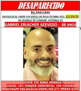 Gabriel foi dado como desaparecido em 12 de outubro, em Vitória. Seu veículo foi roubado após o assassinato.