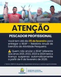O secretário municipal de Pesca e Aquicultura de Guarapari, Antônio Carlos Cavalcanti, ressaltou que o município está atuando para orientar os trabalhadores da pesca. “Nossa função é garantir que os pescadores tenham acesso às informações corretas e não sejam prejudicados por falta de orientação. Estamos reforçando esse alerta para que todos regularizem o REAP dentro do prazo e mantenham seus direitos e o exercício legal da atividade”, afirmou.
