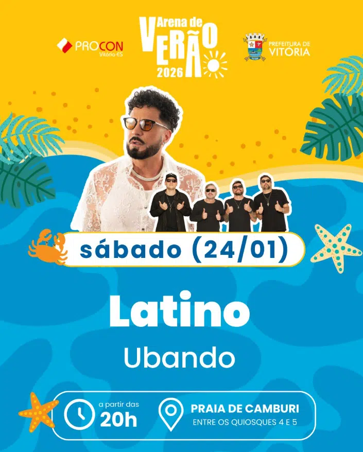 A Arena de Verão 2026 entra em sua reta final mantendo o ritmo intenso que transformou a orla de Camburi no principal ponto de encontro do verão capixaba. Entre os quiosques 04 e 05, o espaço receberá, em mais um final de semana, de sexta-feira (23) a domingo (25), uma programação que passeia pelo pop rock, pelos grandes clássicos nacionais, axé e pela música popular brasileira, reunindo artistas locais a nomes consagrados do cenário nacional.