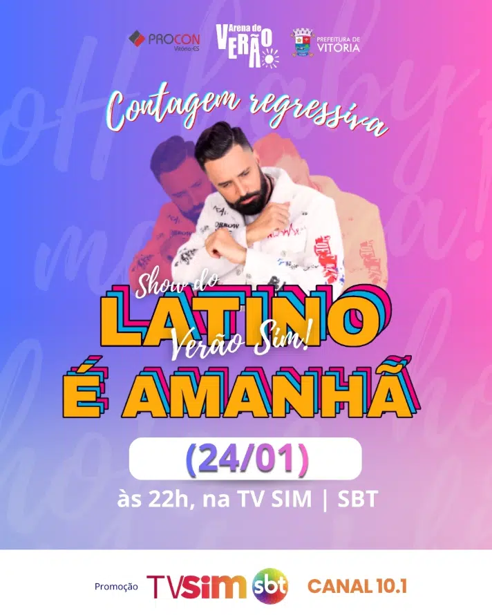 O show de Latino terá transmissão AO VIVO na TV SIM/SBT, às 22h.