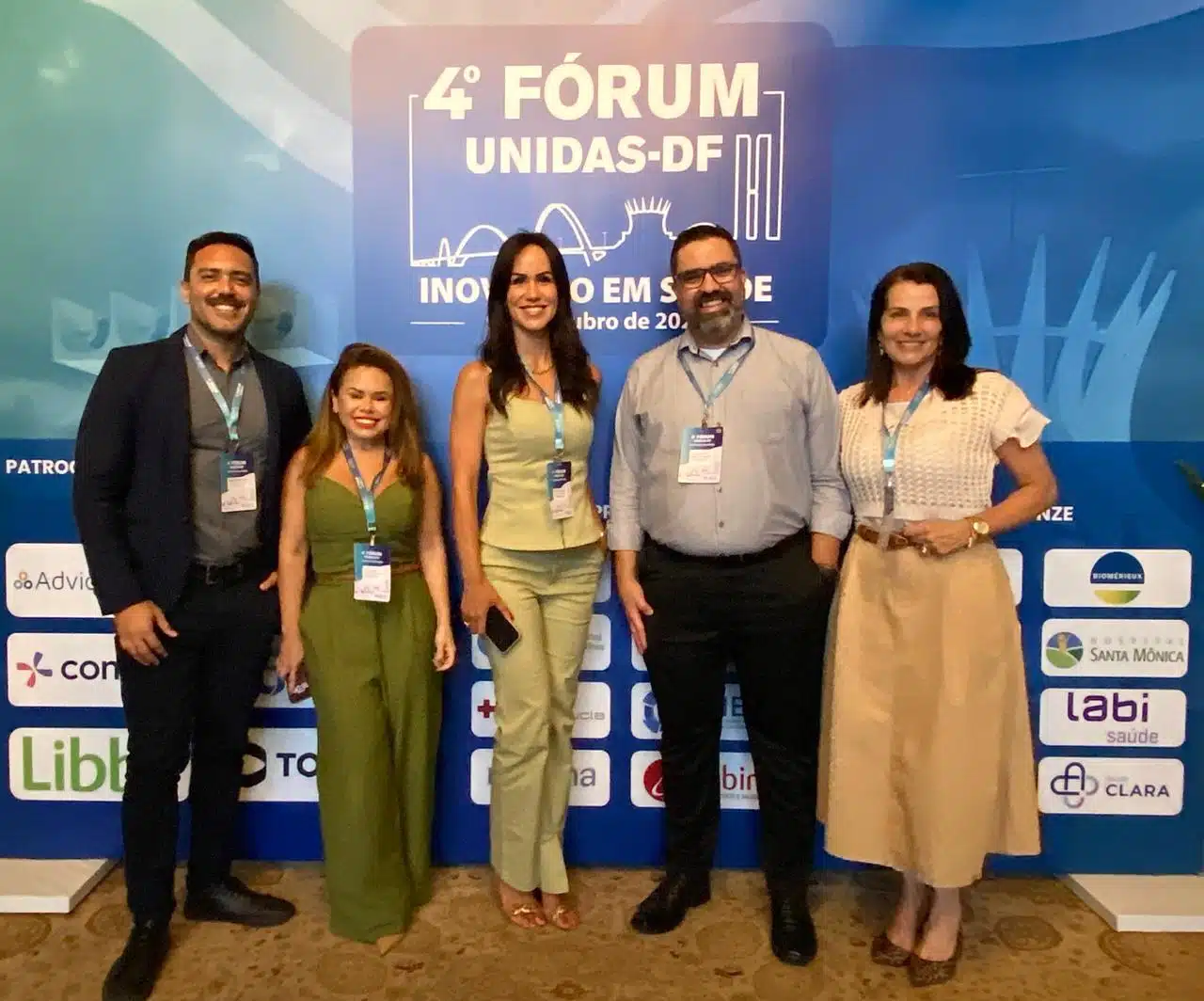 Time comercial do grupo Meridional, Miguel Nascimento, Deniz Oliveira, Simone Bandeira, Fernando Rocha e Rose Caribe marca presença no 4º Fórum UNIDAS-DF – Inovação em Saúde, em Brasília.