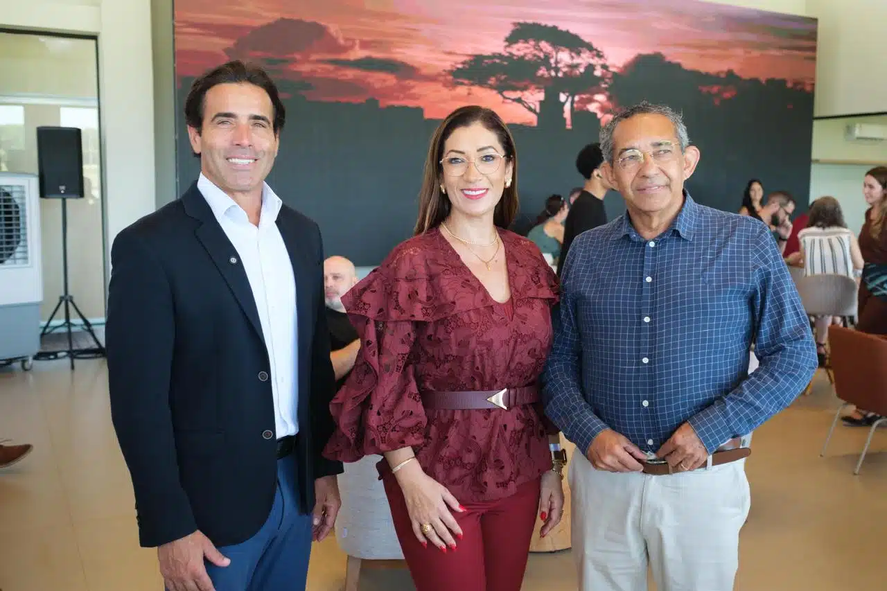 Rodrigo Laranja e Cristiane e Douglas Vaz no pré-lançamento do Boulevard Arbori, fruto da parceiros entre a Portocale e a Vaz Desenvolvimento Crédito: Diego Morales.