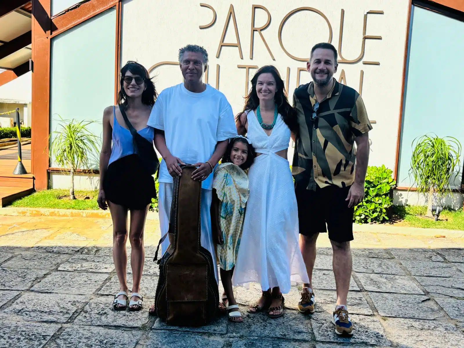O último final de semana foi de sol e cultura no Parque Cultural Casa do Governador, que recebeu duas edições do Parque Aberto. No domingo, dia 26, o público foi presenteado com o concerto internacional “M’Afrika”, conduzido pelo artista cabo-verdiano Mário Lúcio Soares, que levou os espectadores a uma viagem musical pelo continente africano. O espetáculo, já apresentado em dez países, marcou o primeiro show internacional da história do Parque.Na foto: Mirella Schena, gestora e coordenadora artístico-cultural do Parque; Mário Lúcio Soares, cantor internacional de Cabo Verde; Priscila Ferrari e a filha Duda Ferrari Soares; e Fabrício Noronha, secretário de Estado da Cultura. Foto:CL.