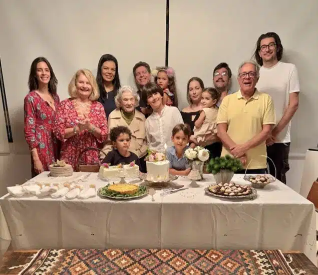No último dia 16, a família Romanelli se reuniu em uma emocionante celebração para comemorar os 95 anos da matriarca, Dona Ruth Romanelli. Em plena forma e esbanjando vitalidade, Dona Ruth recebeu os parabéns em uma festa intimista na casa da filha Solange Herkenhoff, ao lado do marido Mário e de toda a família. O evento contou com a presença dos netos Daniel Herkenhoff, Alexandra Herkenhoff e Marianna Romanelli, que veio diretamente de Paris para estar presente. Entre os convidados estavam também os genros Leonardo Prata e Patrício Tasisto, a nora Simone, e os bisnetos os bisnetos, Maël, Jorge, Estela, e os gêmeos, Felipe e Helena, que alegraram ainda mais a festa com sua presença. Foi um momento de alegria, afeto e gratidão, onde gerações se reuniram para homenagear e celebrar a vida de uma mulher tão especial como Dona Ruth. Que essa energia positiva e amor transbordante continue a iluminar os dias dessa família tão unida e querida. Parabéns, Dona Ruth, pelos seus 95 anos! Confira a galeria.
