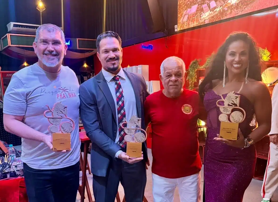 A noite de terça-feira (7) foi marcada por emoção e reconhecimento no Bartuque Vix, em Vitória. A TV Sim/SBT realizou a entrega do Troféu Samba Sim, iniciativa que valoriza profissionais e integrantes que, muitas vezes, não são contemplados pelos julgamentos oficiais, mas têm papel essencial na construção do espetáculo na avenida. Representantes das escolas de samba, convidados e profissionais da folia se reuniram para celebrar os vencedores em seis categorias, escolhidos por votação popular após os desfiles no Sambão do Povo. Entre os destaques: a Independente de Boa Vista brilhou com a Melhor Ala das Baianas; a Mocidade Unida da Glória levou dois troféus — Melhor Rainha de Bateria e Escola da Galera — e ainda viu seu presidente, Robertinho da MUG, ser homenageado. A Chegou o Que Faltava conquistou Melhor Ala das Passistas, a Novo Império foi reconhecida como Melhor Intérprete, e o prêmio de Melhor Velha Guarda terminou empatado entre Unidos de Piedade e Unidos de Jucutuquara. Nesta noite especial, entre os presentes do Grupo Sim, estavam Cris Dock, superintendente de TVs e Projetos Especiais da TV SIM/SBT, e Márcio Chagas, diretor comercial do Grupo Sim.