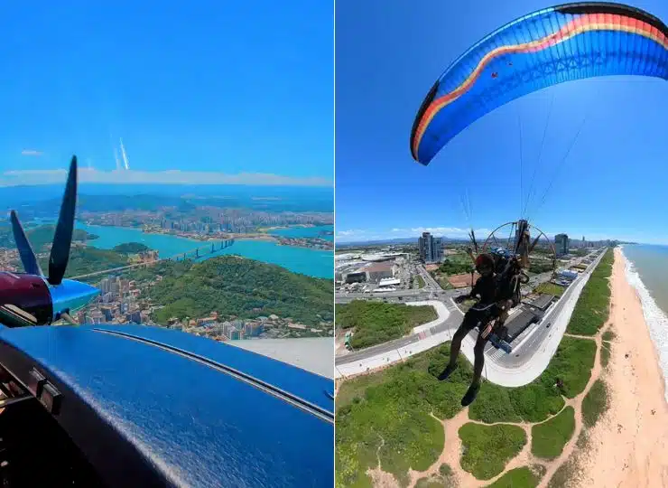 A proposta é direta: sair do chão para enxergar melhor. Em poucos minutos, o que já é conhecido ganha outra escala, com mar, serra e cidades se redesenhando diante dos olhos.