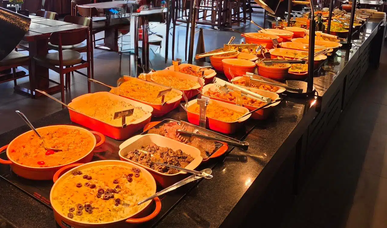 O buffet funciona de segunda a sexta-feira, das 11h30 às 15h, no formato self-service, permitindo que o cliente se sirva à vontade. O valor é de R$ 89,90 por pessoa. Crianças de até 3 anos não pagam, e aquelas com até 12 anos pagam R$ 49,90.
