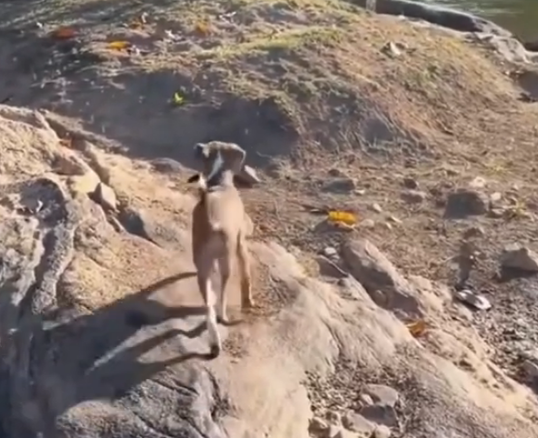 Cachorro salva peixe em poça no Rio Itapemirim e vídeo viraliza