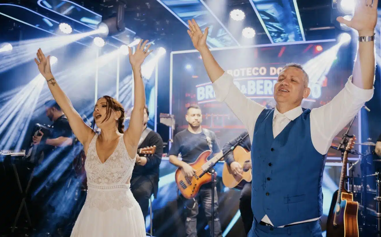 Já na festa, que seguiu noite adentro, a energia tomou conta da pista. Com telão e vídeo do Wave Grupo, a abertura ficou por conta de uma valsa encantadora protagonizada pela noiva, bailarina, que colocou o noivo para dançar e arrancou aplausos dos convidados. A trilha sonora refletiu a personalidade do casal, com muito pop e rock, preferidos de Thalita, e a banda Beat Lock deu o tom perfeito. O sertanejo, marca registrada de Mateus, também marcou presença, assim como as apresentações que mantiveram o clima lá no alto até a madrugada, com meus meninos Breno & Bernardo. O DJ Leandro Netto, amigo de longa data do noivo, também animou os convidados, inclusive que vieram de Brasília, Cuiabá, São Paulo, Rio de Janeiro, Madri, Gramado e Budapeste.