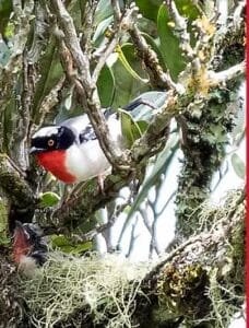Saíra-apunhalada em ninho/Foto: Gabriel Leite / https://www.sairaapunhalada.org.br/