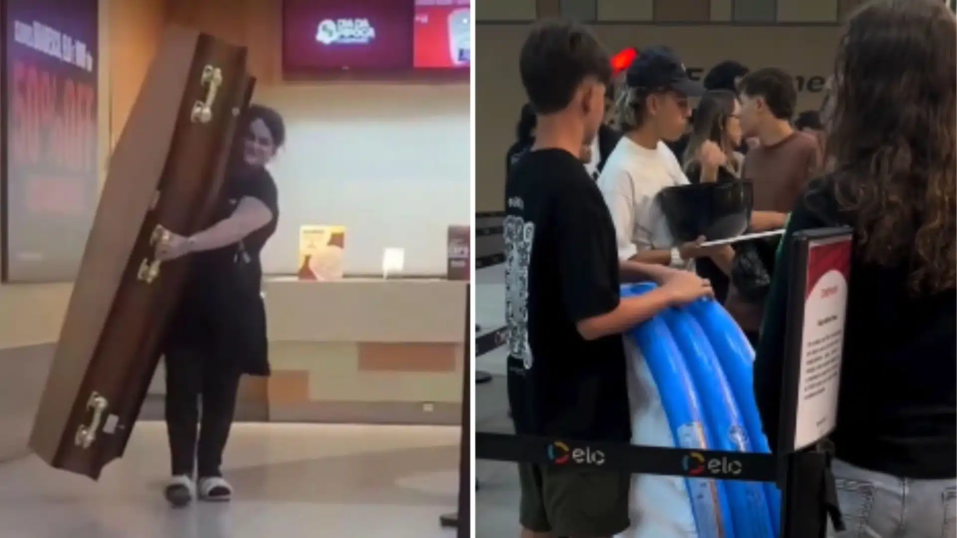 Uma ação promocional da rede de cinemas Cinemark gerou repercussão nas redes sociais após clientes levarem recipientes inusitados para aproveitar o desconto na compra de pipoca. Entre os casos que viralizaram está o de uma mulher que tentou entrar em um shopping com um caixão para participar da promoção.
