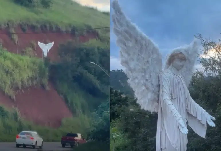 Um vídeo que circulou nas redes sociais nos últimos dias colocou uma escultura inusitada no centro das atenções. As imagens, gravadas pelo hair stylist Everaldo Stelzer, mostram um anjo gigante às margens de uma estrada em Castelo, no Sul do Espírito Santo. O registro rapidamente viralizou e já soma cerca de 1,8 milhão de visualizações.