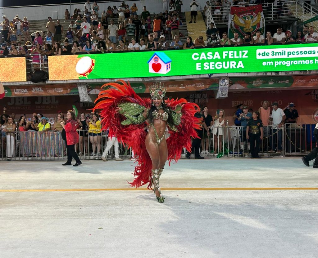 Assinado pelo carnavalesco Petterson Alves, o desfile trouxe figurinos luxuosos, carros alegóricos gigantes e uma estética impressionante, transformando o Sambão do Povo em uma celebração da biodiversidade capixaba.