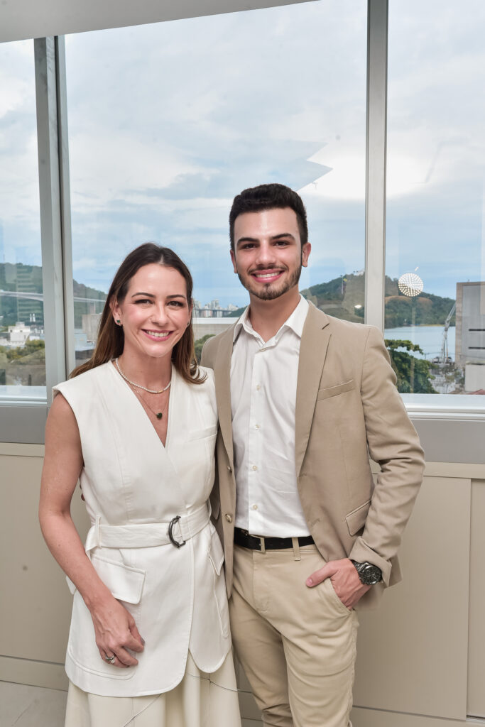 A cirurgiã-dentista Larissa Pavesi inaugurou sua segunda clínica LP em Vitória, na Enseada do Suá, oferecendo um conceito premium com conforto, tecnologia e acolhimento. O projeto é assinado pela arquiteta Juliana Goulart e inclui consultórios modernos, sala de repouso pós-cirúrgico, brinquedoteca e espaço de café. Na última sexta, Larissa recebeu familiares e a equipe em um encontro intimista. Na foto, Larissa posa com o parceiro e cirurgião-dentista Vinicius Fardin.