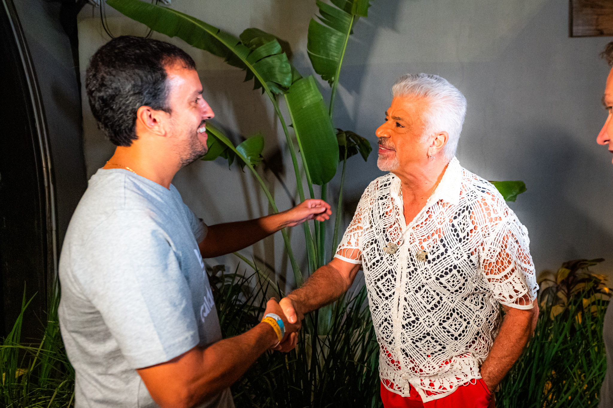 O cantor Lulu Santos viaja pelo mundo (fez exterior) com sua nova turnê, Barítono, e na véspera do feriado, após cinco anos sem vir, se apresentou em Vitória/ES, o show número 52 desta turnê, sob batuta da Booa Produções, de Marcio Ribeiro e Mateus Carvalho, com um super show, com mudança de roteiro e tudo mais, fazendo uma apresentação que foi ovacionada do início ao fim de quase 2 horas e meia, cantando grandes sucessos para a alegria dos capixabas que saíram em êxtase. Amaram o show, o cenário, tudo. Nítido de ver a alegria do cantor no palco. Um dos melhores shows feitos por aqui. No final da apresentação, que aconteceu no Espaço Patrick Ribeiro, Lulu além de apresentar sua banda, fez questão de apresentar toda a sua equipe, a equipe “graxa”, aquela que chega antes e sai depois de todos os shows, e que na pandemia precisou de tantas campanhas – o SOS Graxa – pelo país todo. Toda produção tem equipe da graxa e Lulu valoriza cada um que está no time dele. Na foto de Levi Mori, Lulu com Márcio Ribeiro da Booa Produções. O público quer também em Guarapari, hein! Fica essa dica.