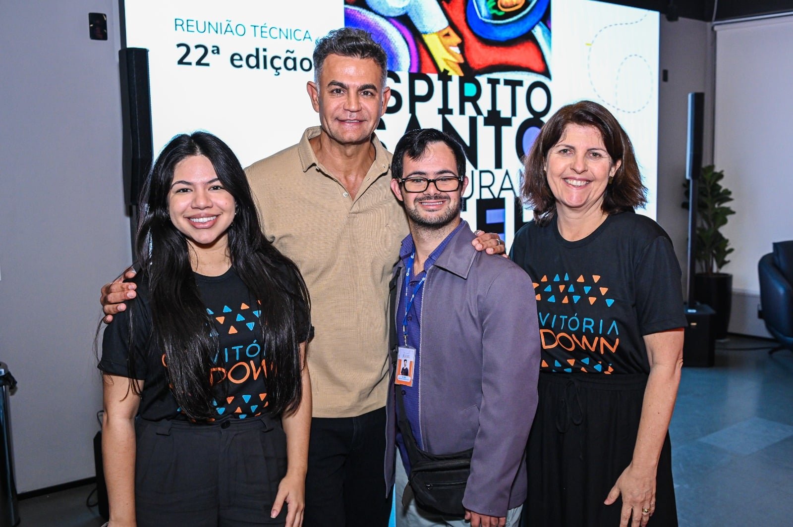 Fernando Reis, idealizador do festival Restaurant Week, junto com Bianca Marques, Daniela Rosa e Yuri Lopes, representantes da Vitória Down, parceira social desta 22.º edição do evento no Espírito Santo. O evento já tem data marcada e acontecerá entre 24 de outubro e 24 de novembro. Foto:Arthur Louzada.