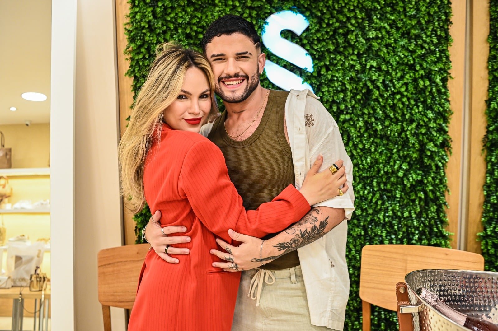 Jess Benevides e Matheus Petri marcaram presença no coquetel de inauguração da nova loja Sonho dos Pés, promovido pela empresária Carolina Lemos. O evento reuniu imprensa, influenciadores e clientes. Crédito: Arthur Louzada