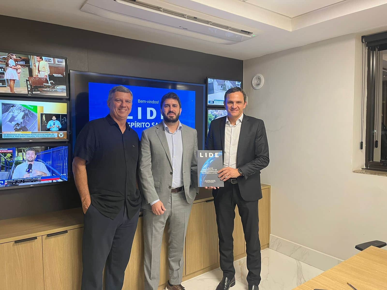 O presidente do Grupo Sim, João Resegue, recebeu na sede da empresa Thiago Santos, presidente do LIDE ES, e Francisco Carvalho, conselheiro do grupo e head de Inovação e Tecnologia do LIDE. Durante o encontro, foi firmada uma parceria entre o LIDE ES e o Grupo Sim, que atuará como mídia partner do Fórum Regional de Tecnologia e Inovação, a ser realizado no dia 20 de maio, no Le Buffet Lounge, em Vitória.