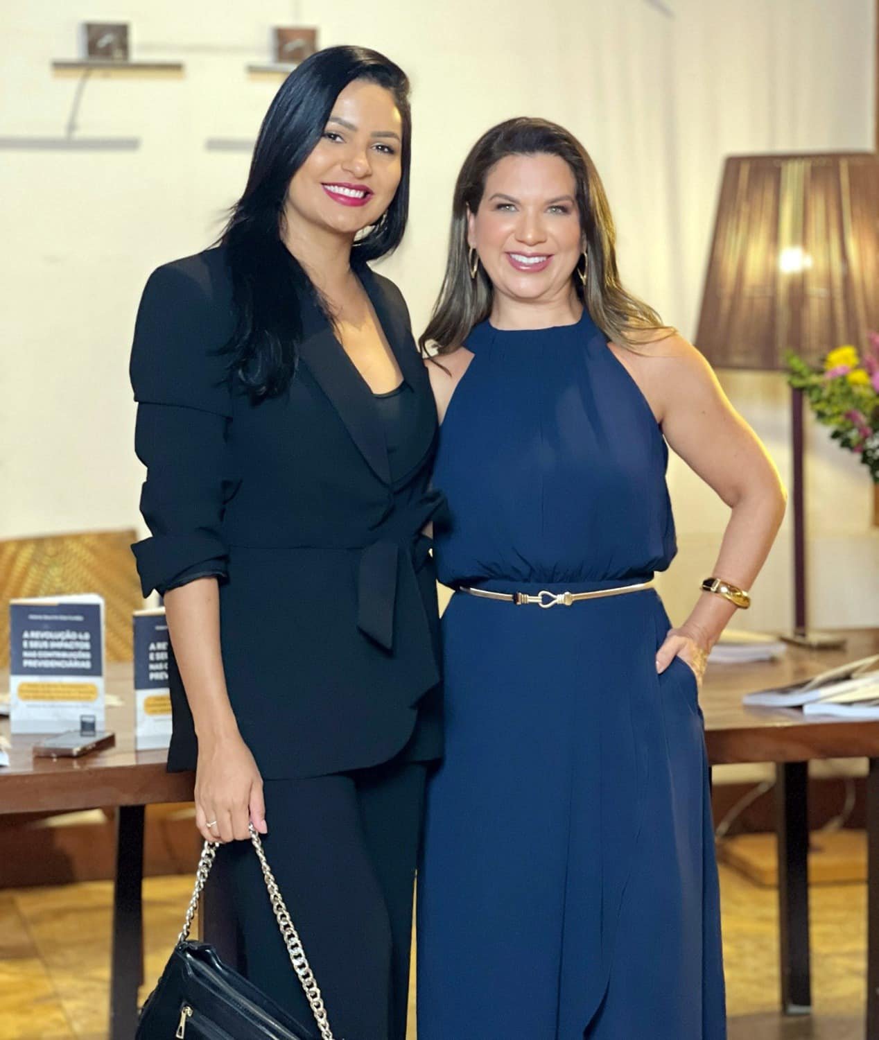Fruto de sua dissertação de mestrado em Direito Previdenciário, na PUC/SP, “A Revolução 4.0 e Seus Impactos nas Contribuições Previdenciárias” é o segundo livro da advogada, professora e pesquisadora Valéria Gaurink Dias Fundão, lançado na noite da última quinta-feira, dia 20 de março, no Iate Clube do Espírito Santo. O evento foi super prestigiado por familiares, amigos e colegas da área jurídica. Na foto, Jhassy Borel prestigiando Valéria Gaurink. Foto: Fábio Cazanga.