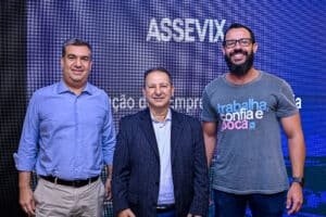 Gustavo Prado, Nazca, Alessandra Comério e Camila Areal, da Mocelin Engenharia, no aniversário de 4 anos do Base27, maior hub de inovação do Estado, que ampliou recentemente o número de mantenedores. Crédito: Daniel Pimenta.