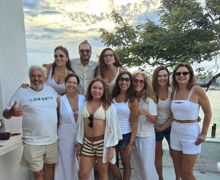 Com a elegância e o carinho que lhe são característicos, Gracinha Nader abriu seu belo apartamento na Praia das Virtudes nesta quarta-feira, dia 7, para receber um grupo de amigas em um almoço especial. A tarde foi marcada por alegria, descontração e muitas conversas animadas, em clima de verão. Entre as presenças, destacaram-se Hélvia Abaurre, Soeli Gama, Carlota Gottardi, Dalva Carone, Alzira Torres, Solange Herkenhoff, Míriam Fafá, Orlandina Almeida, Sônia Abelha, Valéria Nemer, Lusa Vieira e Stephanie Nader, filha da anfitriã. O encontro ganhou ainda mais charme com o toque tropical na decoração, assinado por Soeli Gama, que trouxe cores e frescor típicos da estação. Essas reuniões já se tornaram tradição durante a temporada de verão em Guarapari, reforçando laços de amizade e celebrando bons momentos à beira-mar.