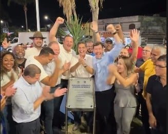 O evento em questão foi a inauguração da Praça Parque das Famílias, no bairro Araçás, inteiramente revitalizada e custeada com recursos do Governo do Estado (um investimento de R$ 6 milhões).