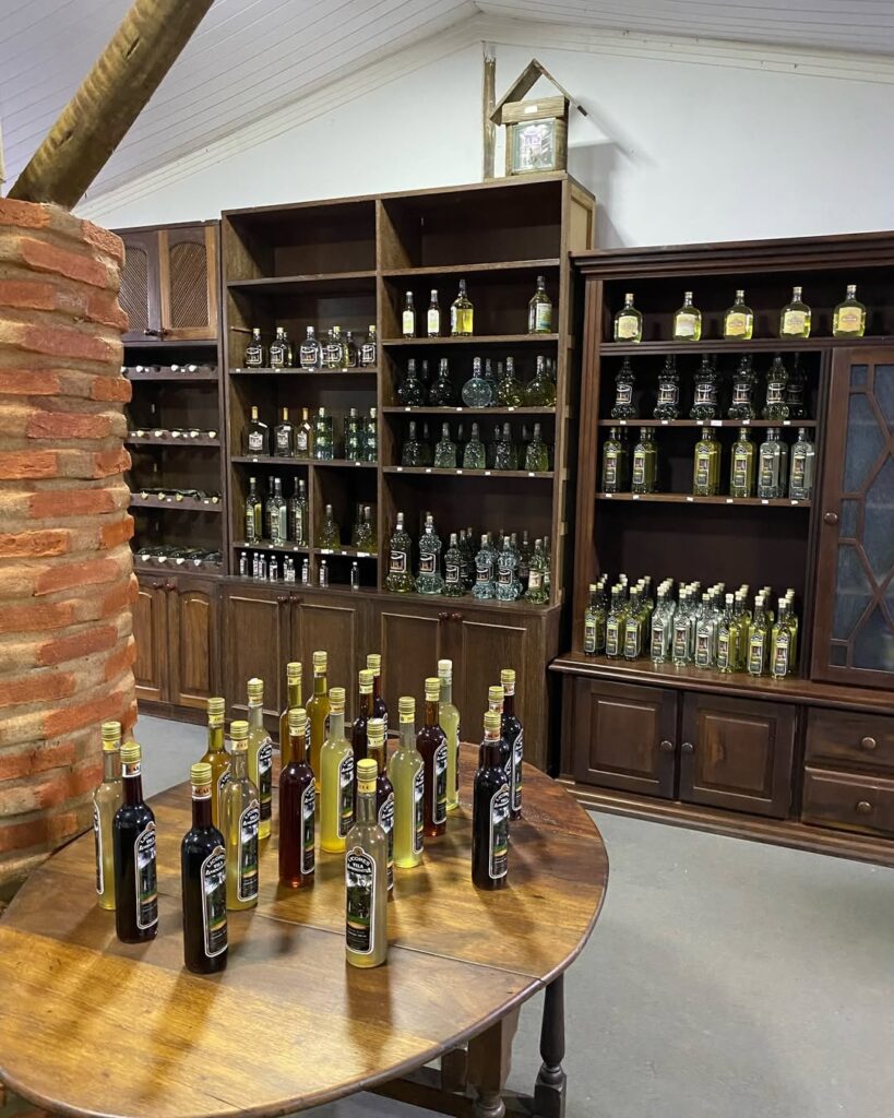 Embora o trânsito de veículos seja permitido, a melhor forma de conhecer o espaço é caminhar ao longo da rua. Um dos destaques é o Museu da Cachaça, criado há cerca de 20 anos por Lauro de Franco Seda. No acervo, estão objetos ligados à produção da bebida e dezenas de peças antigas reunidas ao longo dos anos. “Também temos um alambique no sítio, que se chama Vila Anunciatta em homenagem à minha mãe, Maria Anunciatta, imigrante italiana”, contou.