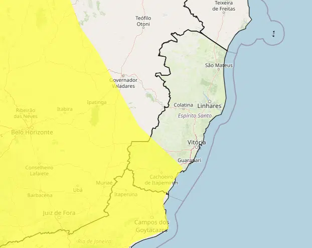 Durante o dia, o tempo ainda segue firme na maior parte do estado, com sol entre nuvens e temperaturas em elevação. Na Grande Vitória, a máxima chega a 35 °C, enquanto no sul pode alcançar 37 °C. A exceção continua sendo a região do Caparaó, onde há previsão de pancadas de chuva à tarde.