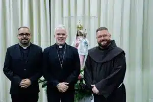 Durante o evento de lançamento da Festa da Penha, o Frei Djalmo Fuck (à direita), guardião do Convento da Penha, fez um convite especial.