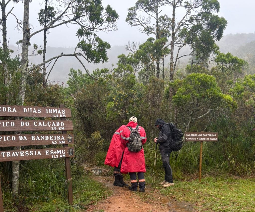 Outro grupo atua em uma área onde, no dia anterior, foram encontrados indícios de possível passagem humana. Já a terceira equipe percorre um trajeto que liga a trilha principal à Trilha do Tecnotruta, passando pelo Pico do Calçado.