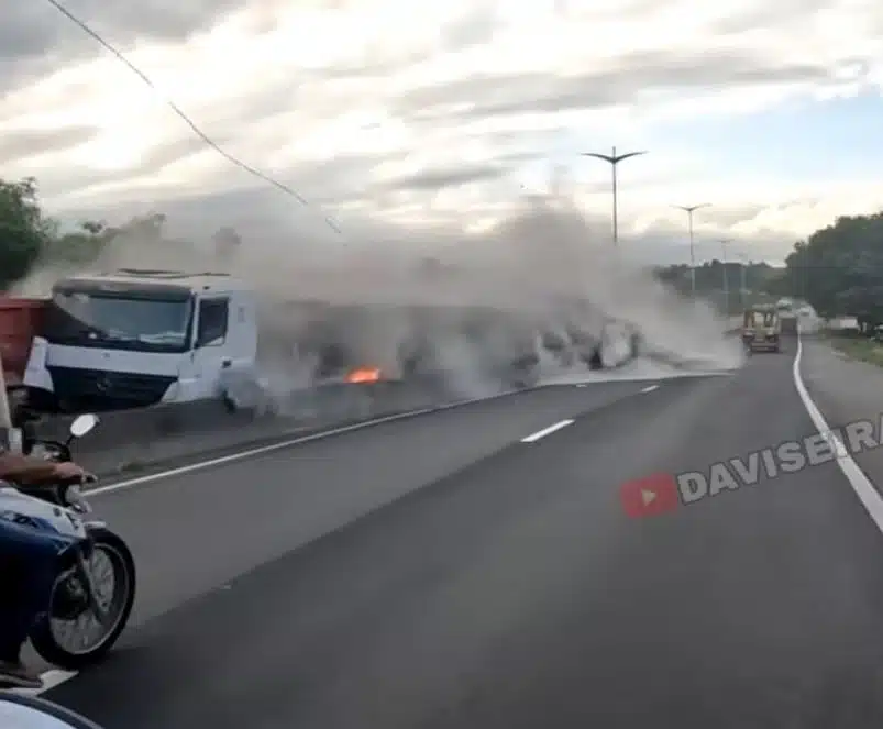 Apesar da gravidade da ocorrência e do incêndio que consumiu os veículos, ninguém ficou ferido.