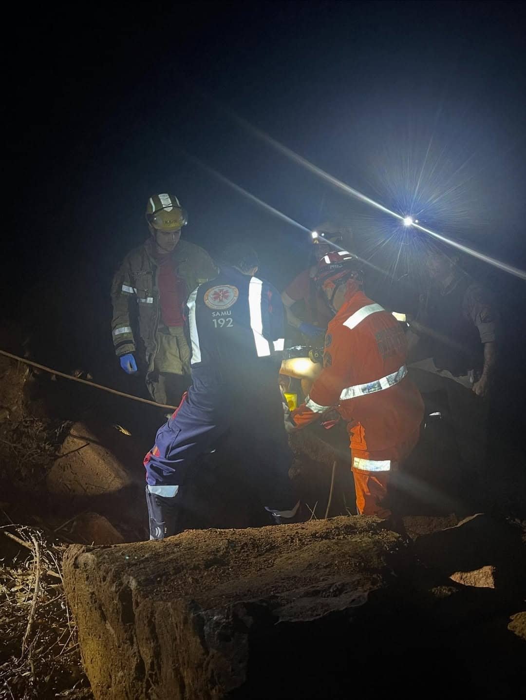 Algumas vítimas já estavam fora do veículo quando as equipes de resgate chegaram; outras ficaram presas nas ferragens, exigindo uso de técnicas de salvamento vertical devido ao difícil acesso do local. Equipes da Polícia Militar, da Polícia Rodoviária Federal, do Corpo de Bombeiros e Samu acompanharam a ocorrência, prestando socorro às vítimas que tiveram que ser resgatada em lugar de difícil acesso.
