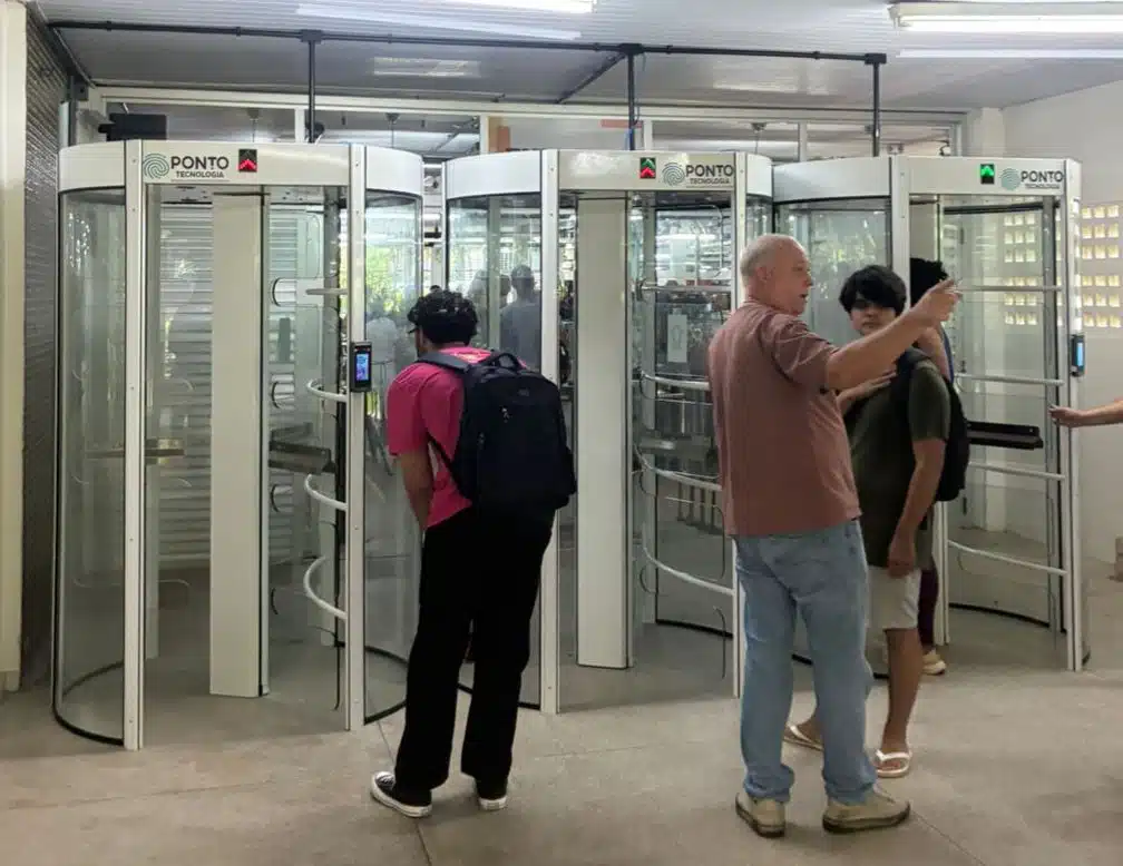 As portas são semelhantes às utilizadas por agências bancárias, mas não possuem detector de metal, pois o objetivo é realizar o controle de acesso. O investimento total foi de R$ 196,9 mil, realizado pela empresa terceirizada. Esse valor contempla a aquisição de sete catracas, toda a adequação de infraestrutura necessária e a instalação dos equipamentos de leitura por biometria facial.