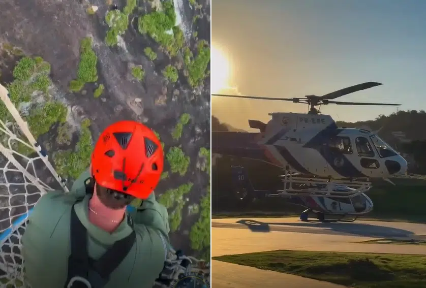 O Notaer foi acionado pelo Corpo de Bombeiros por conta da complexidade da ocorrência. Após avaliação inicial, os bombeiros identificaram que o acesso apenas por cordas seria insuficiente por causa da distância e das condições do local.
