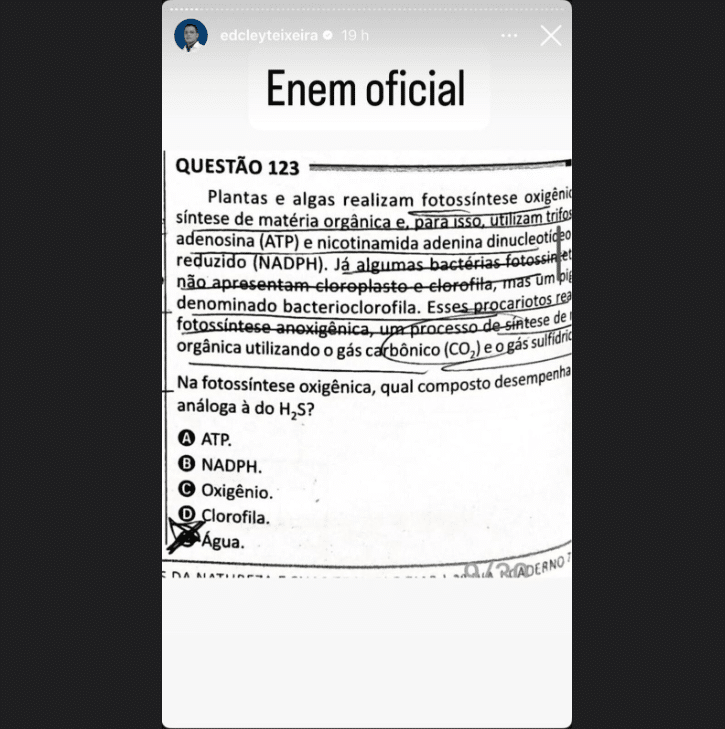 O orgão não deixou claro quais são as questões. Candidatos que fizeram Enem passaram a denunciar nesta terça-feira, 18, uma suspeita de vazamento da prova porque um professor do Ceará teria “previsto” questões feitas no domingo, 16. O professor citado é Edcley S. Teixeira, que também é aluno de Medicina e vende pacotes com monitorias para candidatos do Enem. Em suas postagens nas redes sociais, ele mostra a semelhança entre as perguntas e dá explicações para seu método de estudo para antecipar o conteúdo da prova, que ele chama de “engenharia reversa”.