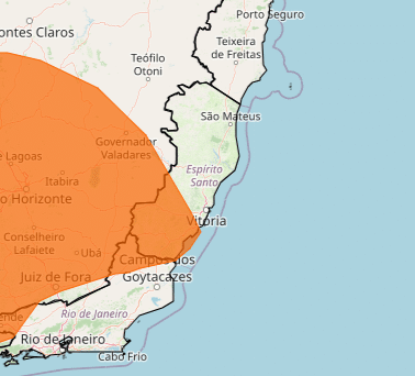 O primeiro alerta, classificado como de perigo potencial, abrange 47 municípios capixabas. De acordo com o Inmet, são esperadas chuvas entre 20 e 30 milímetros por hora, podendo chegar a 50 mm por dia. Os ventos podem atingir até 60 km/h.