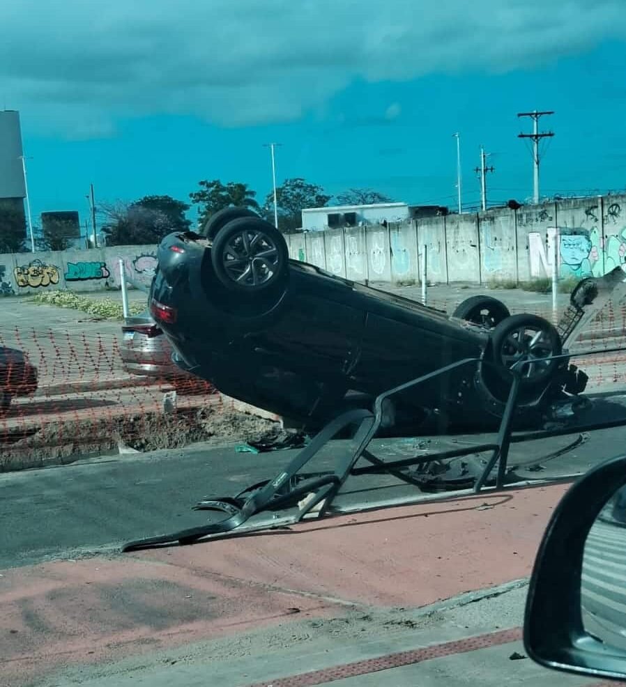 De acordo com as informações divulgadas, o veículo acabou batendo contra a barra de proteção de uma ciclovia antes de capotar. Apesar do impacto e do susto, o motorista não se feriu.