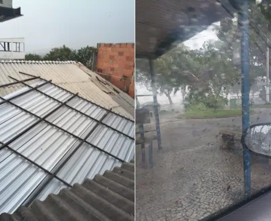 Moradores relataram destelhamento de casas e falta de energia elétrica em alguns bairros. Imagens divulgadas nas redes sociais mostram telhados arrancados, ruas alagadas e acúmulo de granizo em calçadas e veículos.