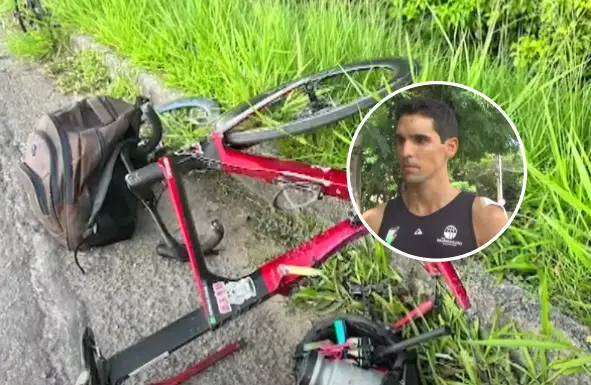 Matheus Machado de Azevedo, triatleta de 30 anos, foi atropelado na manhã deste sábado (29) enquanto pedalava pelo acostamento da Rodovia do Sol, em Vila Velha. O acidente deixou o atleta com ferimentos por várias partes do corpo e a bicicleta ficou completamente destruída. Testemunhas relataram que ele foi arrastado por alguns metros após o impacto.