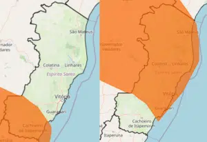 O Instituto Nacional de Meteorologia (Inmet) emitiu dois alertas de “perigo” para tempestades para o Espírito Santo.
