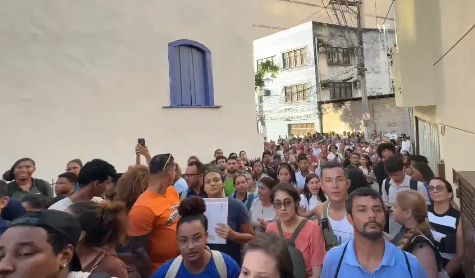 A fila quilométrica de trabalhadores da área da saúde em frente a sede Sindicato dos Trabalhadores em Hospitais e Empresas de Saúde Filantrópicas e Privadas no Estado do Espírito Santo (Sintrasades), na Cidade Alta, em Vitória, terminou em confusão nesta sexta-feira (9). A polícia precisou ser acionada para conter os ânimos no local.