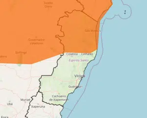 O Instituto Nacional de Meteorologia (Inmet) emitiu dois avisos para chuvas intensas em municípios do Espírito Santo. Classificados como ‘perigo potencial’ e ‘perigo’ na escala do órgão, os alertas têm duração até às 10h deste sábado (23).