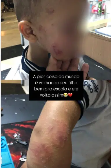 Revoltada com situação, a mulher publicou uma foto do filho machucado e cobrou explicações da escola.