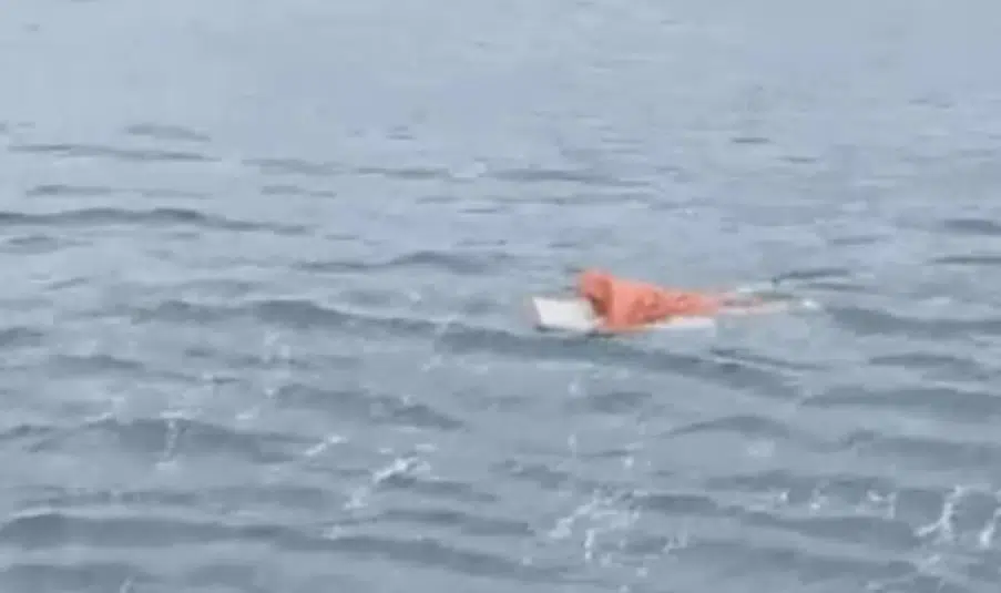 Homem é resgatado sobre porta de geladeira após naufrágio